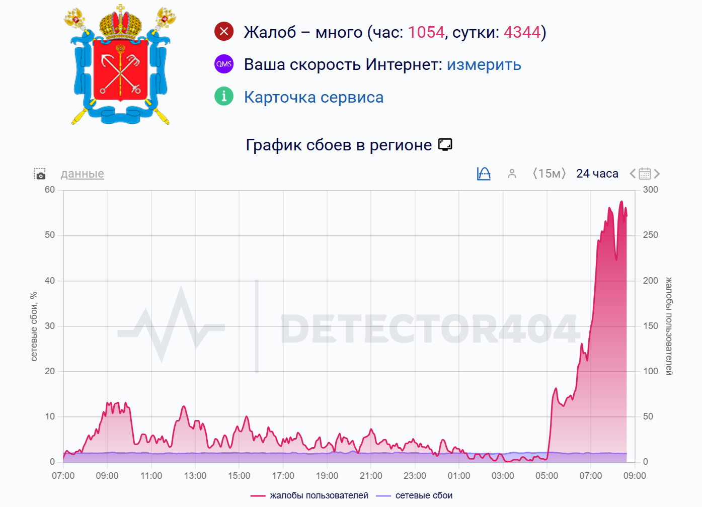 Петербуржцы массово жалуются на сбои в работе мобильного интернета. По данным портала Down Detector, за последний час зафиксировано около тысячи обращений. Проблемы начались примерно в 5:30 — пользователи не могут открыть сайты и приложения.