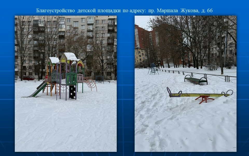 Расположенное на площадке оборудование устарело, износилось и требует замены. Александр Беглов поручил главе администрации Кировского района создать по адресу проспект Маршала Жукова, дом 66, корпус 1 многофункциональную площадку и доложить о выполнении до 28 августа 2026 года.