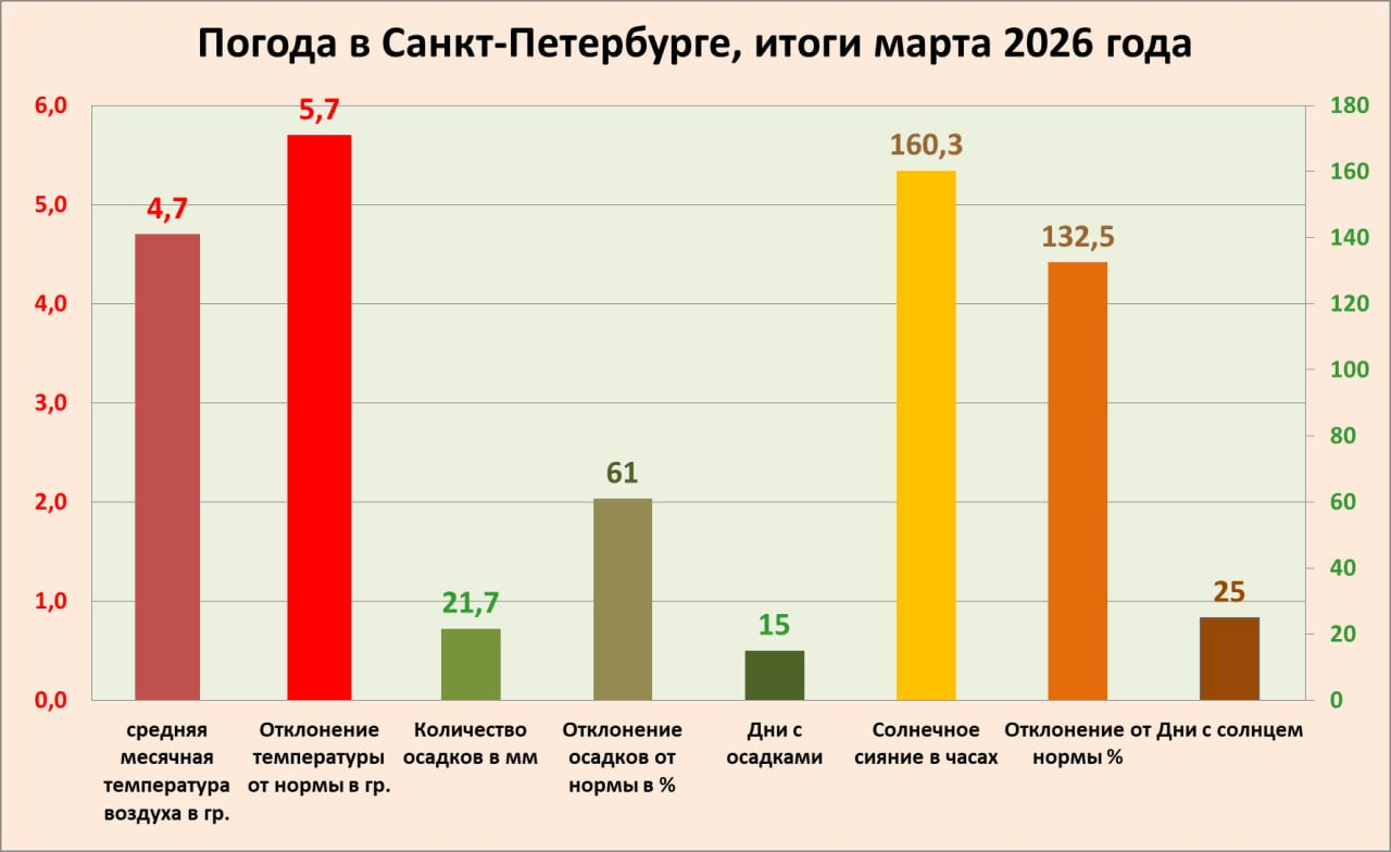 Таким образом, март 2026 года не только подтвердил тенденцию к потеплению, но и установил сразу несколько значимых рекордов, войдя в историю как самый тёплый март в Санкт‑Петербурге.