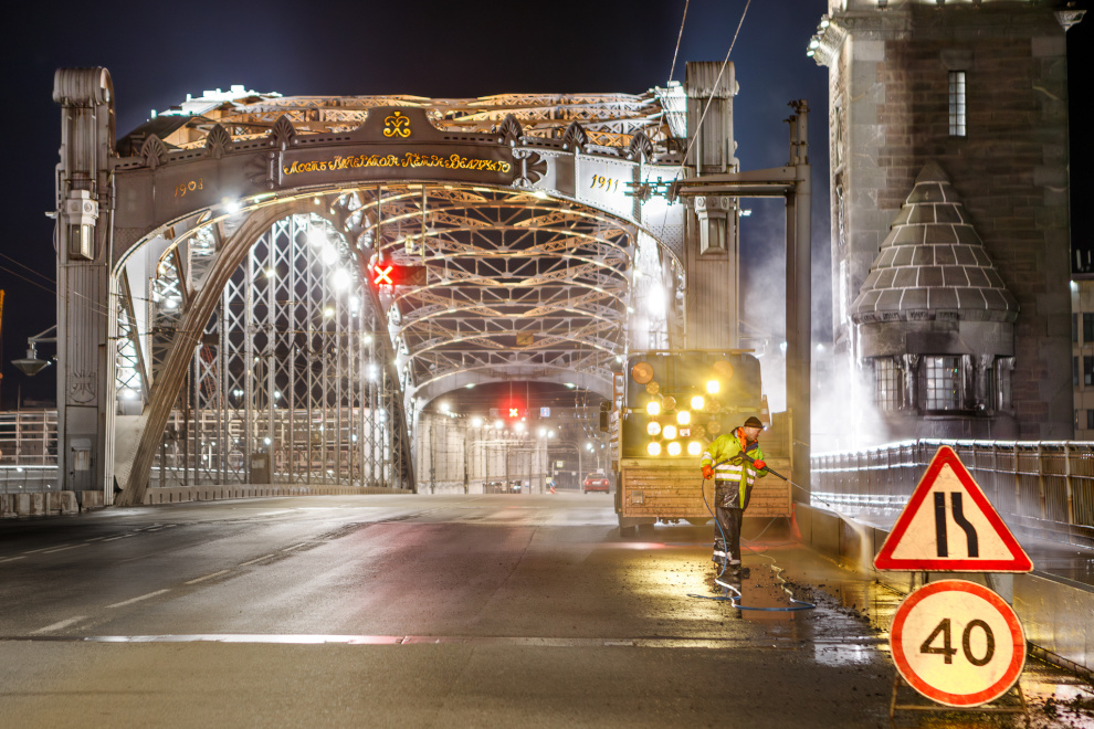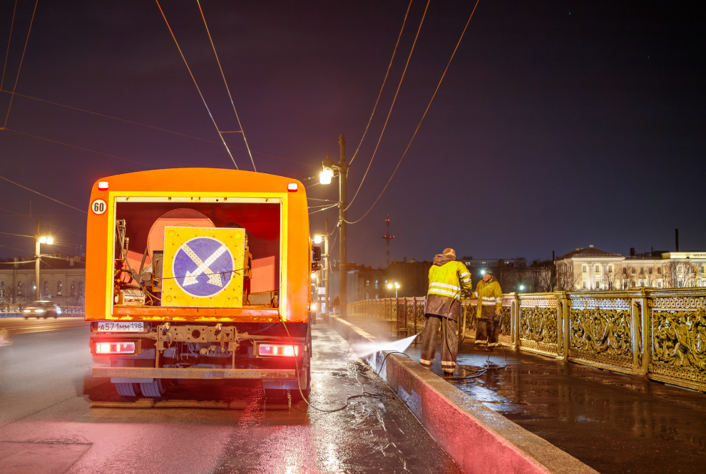 Работы ведутся круглосуточно. Главное условие — плюсовая среднесуточная температура воздуха. До наступления заморозков следующей зимы объекты будут промыты несколько раз, сообщили в Смольном.