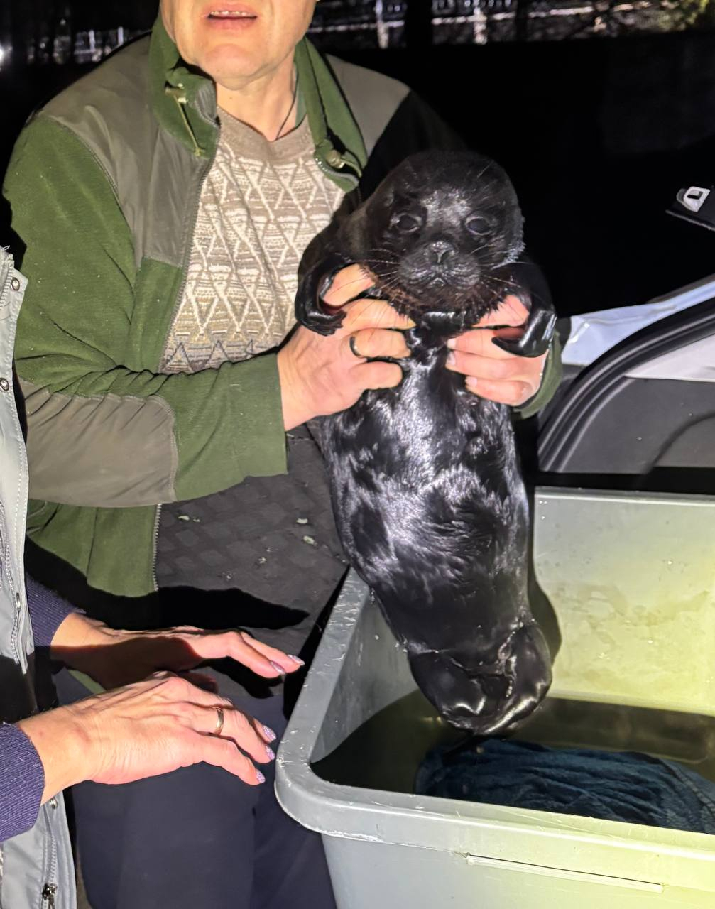 В Фонд друзей балтийской нерпы привезли ладожскую кольчатую нерпу из посёлка имени Свердлова. Её нашли на берегу Невы внимательные прохожие. Малышку отнесли на районную ветеринарную станцию, потому что во рту у неё был рыболовный крючок — неопытная охотница перепутала добычу.
