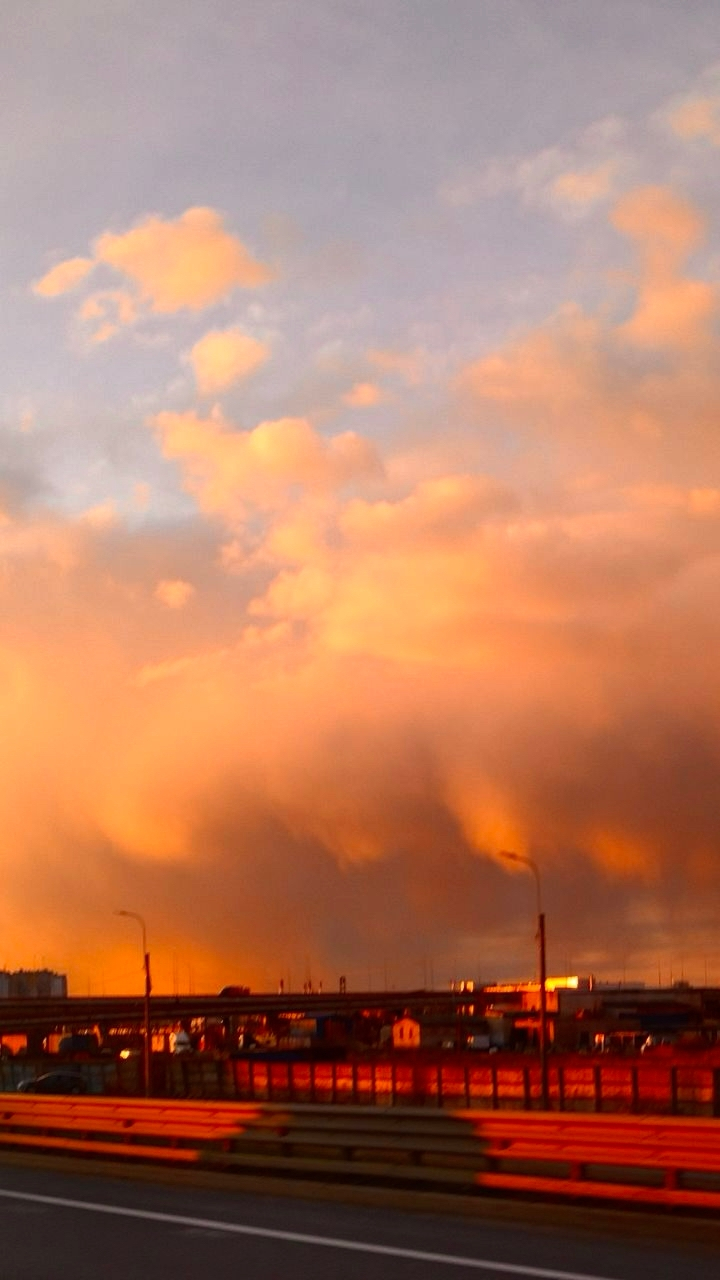 Первый день короткой недели в Петербурге выдался по-настоящему солнечным. Но главным украшением вечера 27 апреля стал, конечно, закат. Небосвод окрасился в яркие жёлто-красные тона, создавая живописную картину.