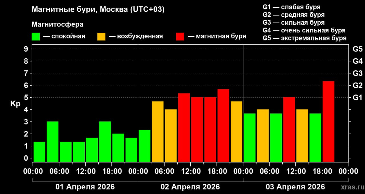 По прогнозам специалистов, полная стабилизация геомагнитной обстановки произойдёт не раньше воскресенья, 5 апреля.