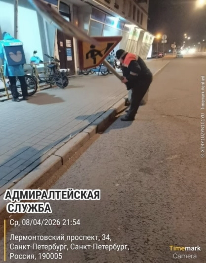Работали и без техники: один из дорожников просто поднял упавшие дорожные знаки руками — и поставил на место.