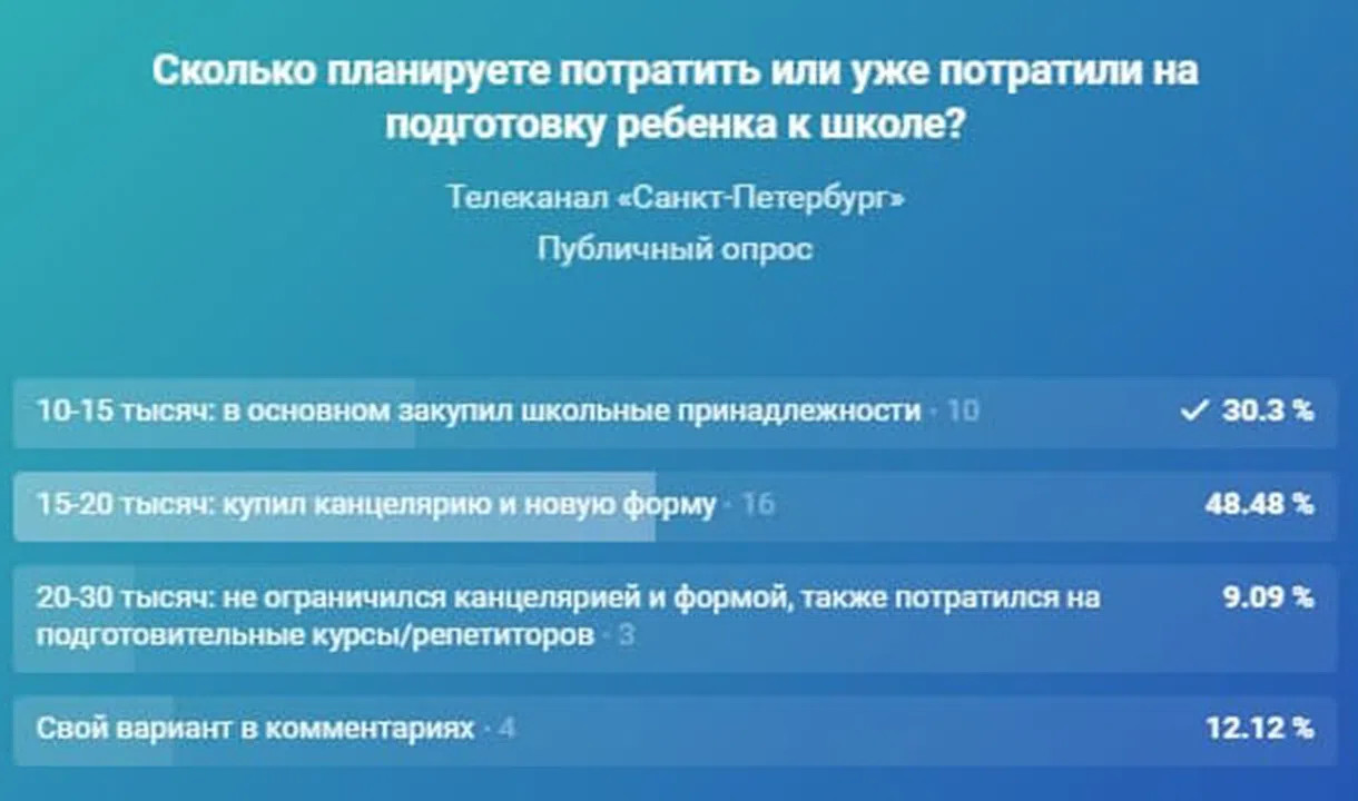 Опрос телеканала: почти половина петербуржцев потратила на подготовку к школе около 20 тысяч рублей