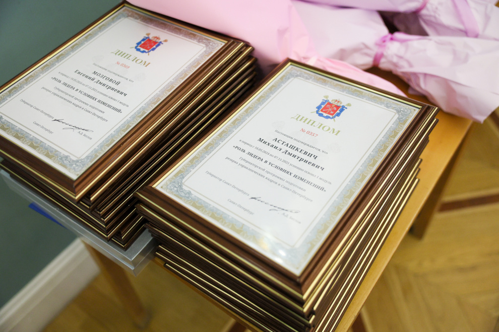 23 участника программы успешно завершили обучение по первому модулю «Роль лидера в условиях изменений». В их числе — руководители структурных подразделений ИОГВ Петербурга, представители районных администраций, управленцы государственных организаций и городских предприятий.